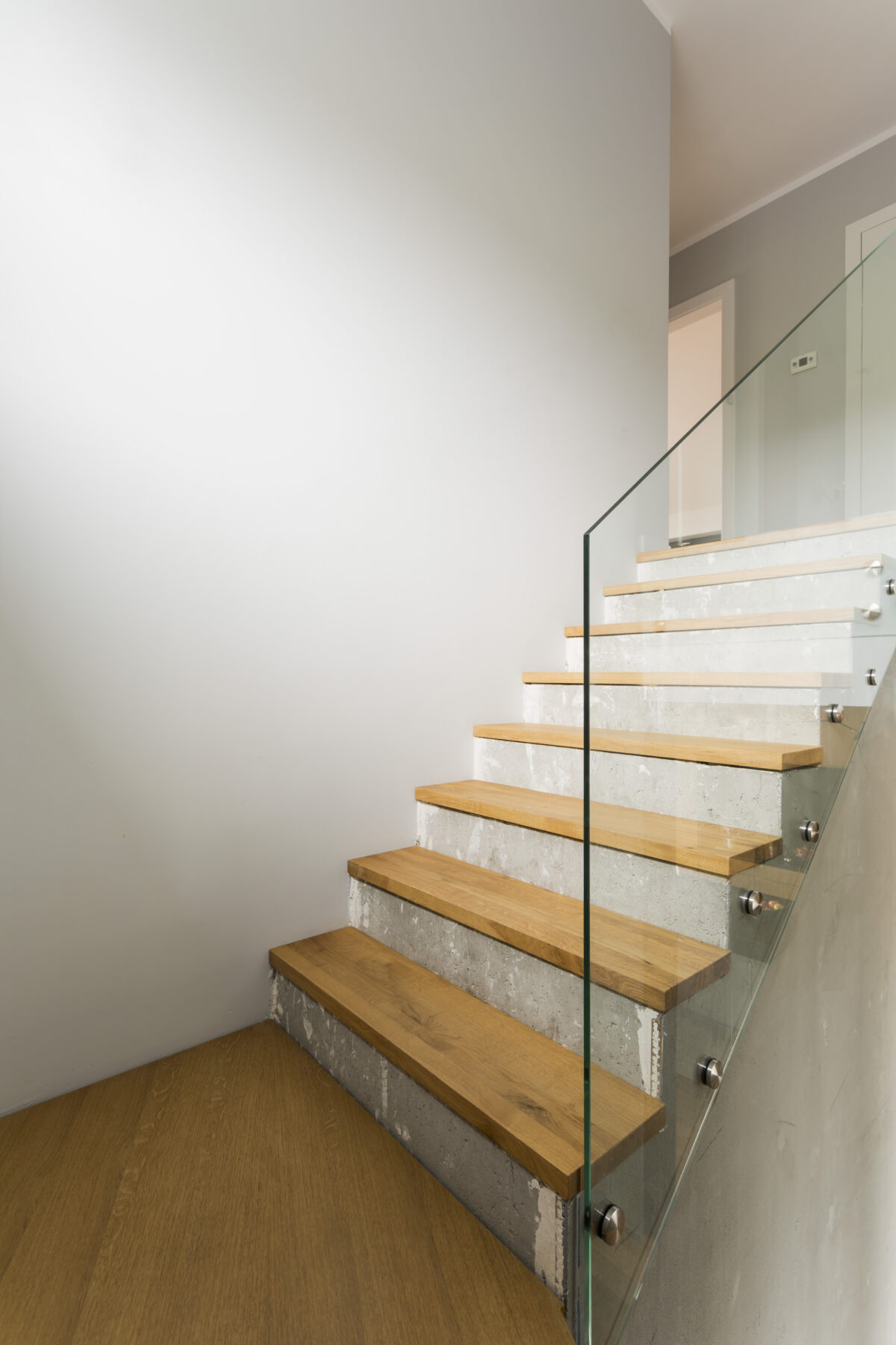 Nowoczesne połączenie natury i przejrzystości: Schody drewniane z balustradami szklanymi w projektach wnętrz